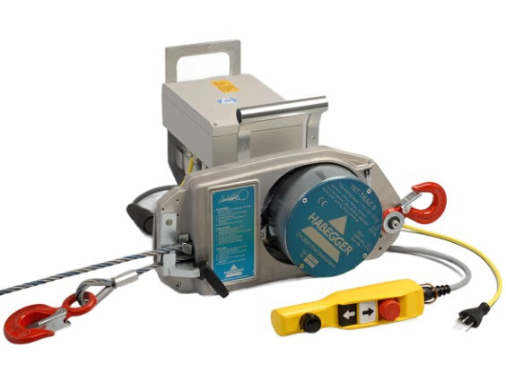 The Habegger HIT-TRAC 8E is a new and super light power-driven rope pulling machine for lifting, pulling and lowering with unlimited rope length.